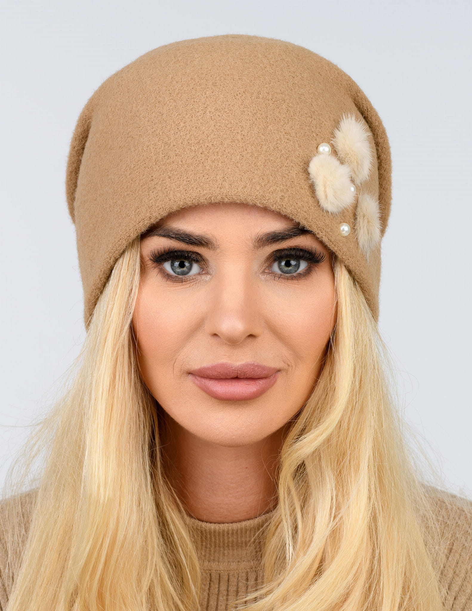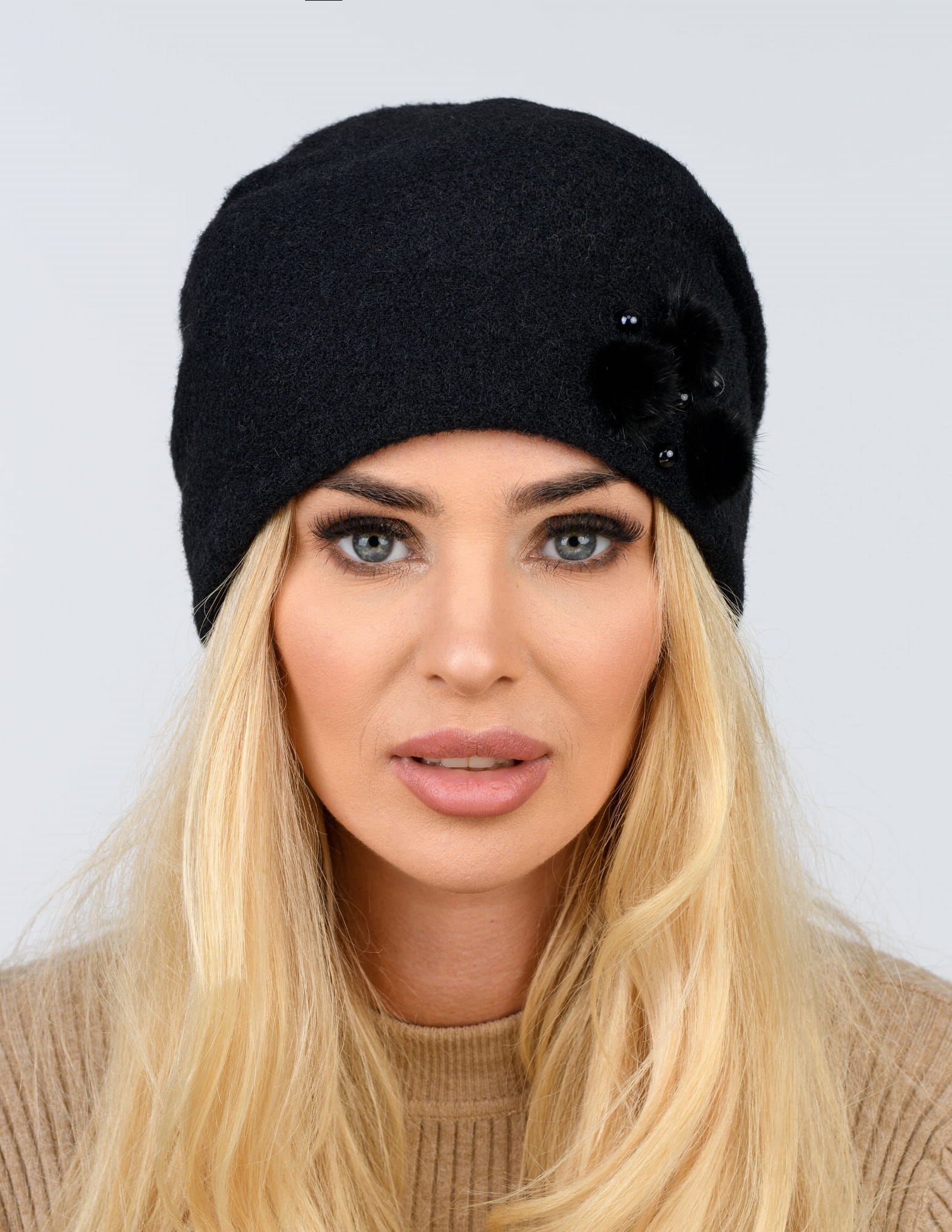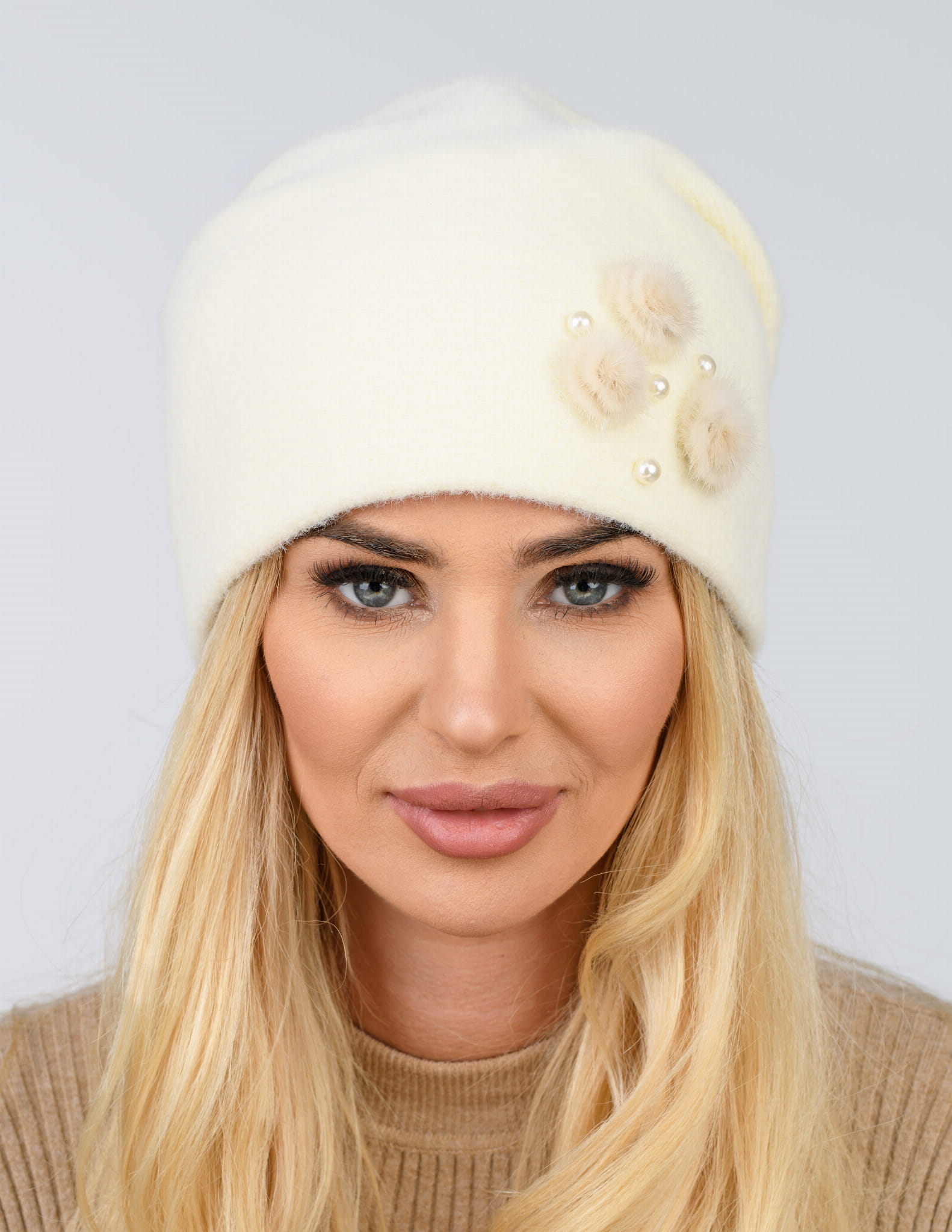 OPIS PRODUKTU: Elegancka czapka damska bez pompona z futrzaną broszką i imitacją pereł. Czapka wykonana z wysokogatunkowej przędzy typu wełna alpakowa. Rozmiar czapki uniwersalny. Szeroka gama modnych kolorów. Wykonana z najwyższą starannością. Skład: 50% wiskoza, 25% poliamid, 15% poliester, 10% modal. Wyprodukowana w Polsce.