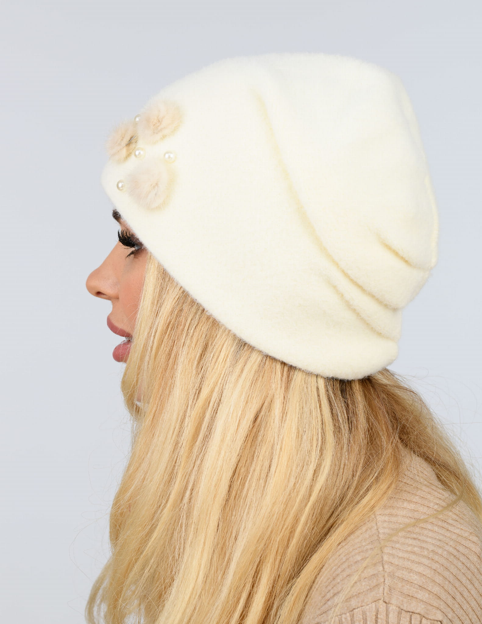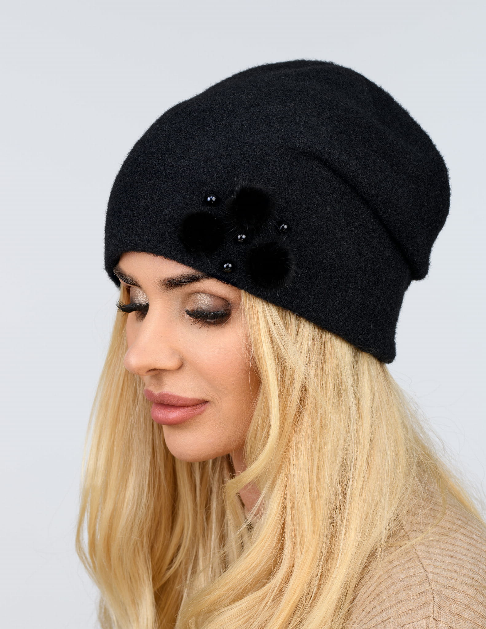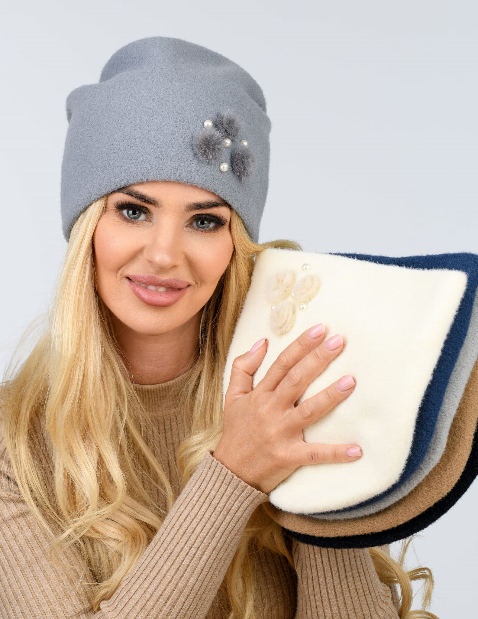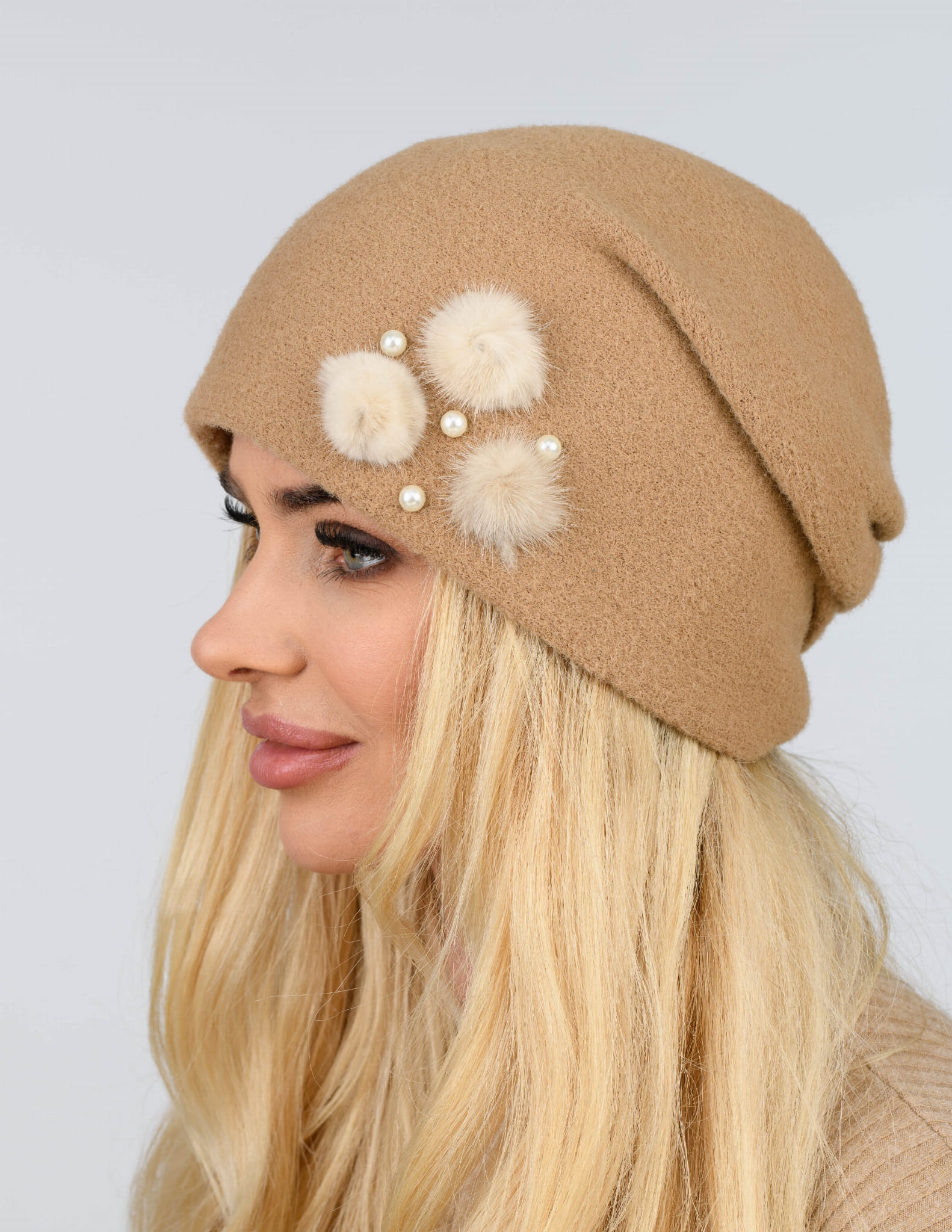 OPIS PRODUKTU: Elegancka czapka damska bez pompona z futrzaną broszką i imitacją pereł. Czapka wykonana z wysokogatunkowej przędzy typu wełna alpakowa. Rozmiar czapki uniwersalny. Szeroka gama modnych kolorów. Wykonana z najwyższą starannością. Skład: 50% wiskoza, 25% poliamid, 15% poliester, 10% modal. Wyprodukowana w Polsce.