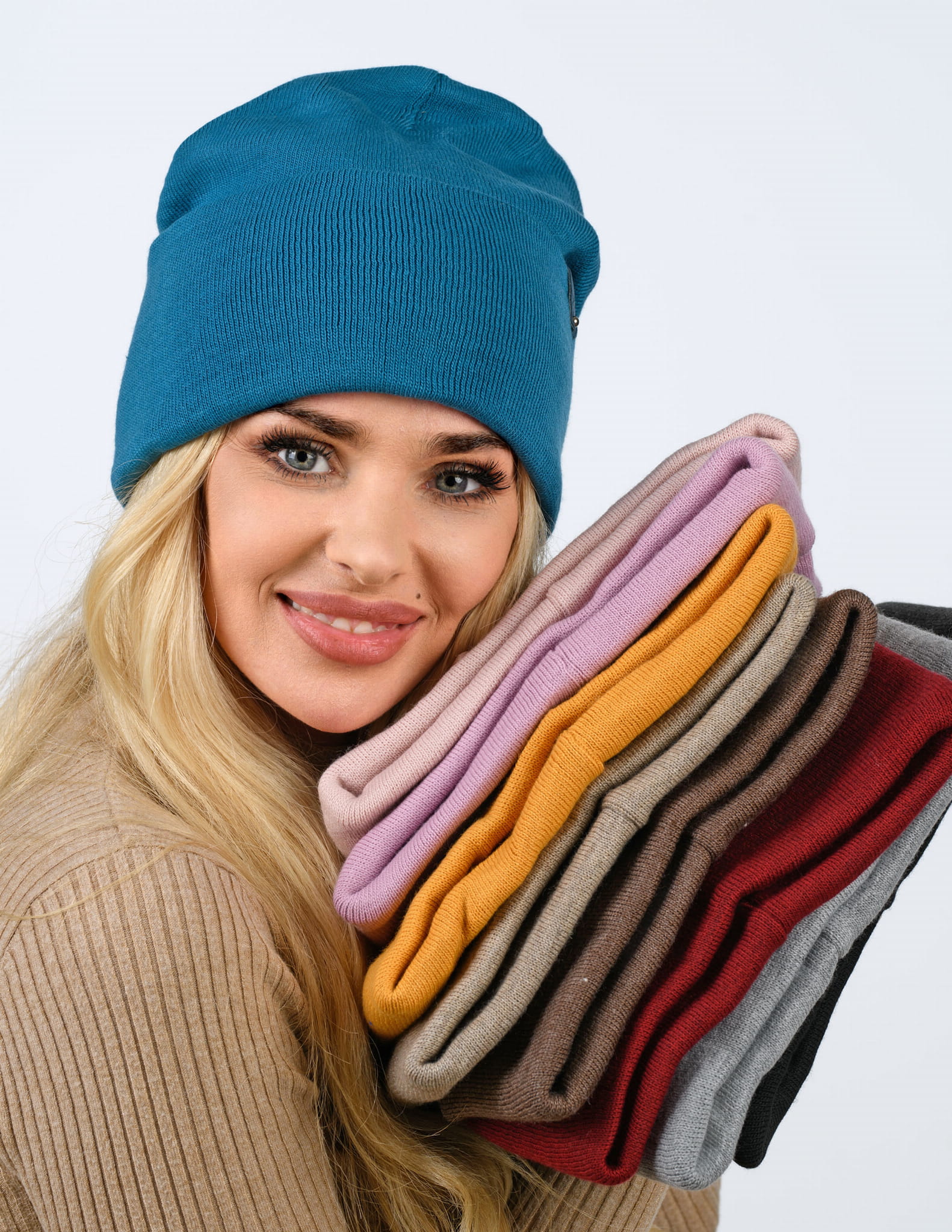 OPIS PRODUKTU: Klasyczna czapka damska LEMA model Mini. Fason czapki beanie (czapka z wywinięciem). Ozdobiona modną etykietą z logo firmy LEMA. Czapka wykonana z gładkiej i ciepłej dzianiny. Dostępna w szerokiej gamie modnych kolorów. Rozmiar uniwersalny (52cm-58cm). Wyprodukowana w Polsce ze szczególną starannością z wysokogatunkowej przędzy. Skład: 100% akryl.