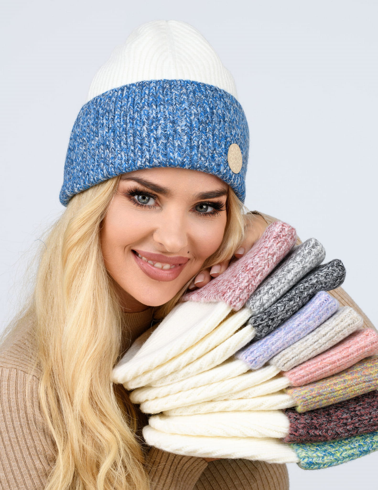 Zimowy komplet damski - czapka beanie z modnym wywinięciem Julian LEMA zestaw czapka z szalem
