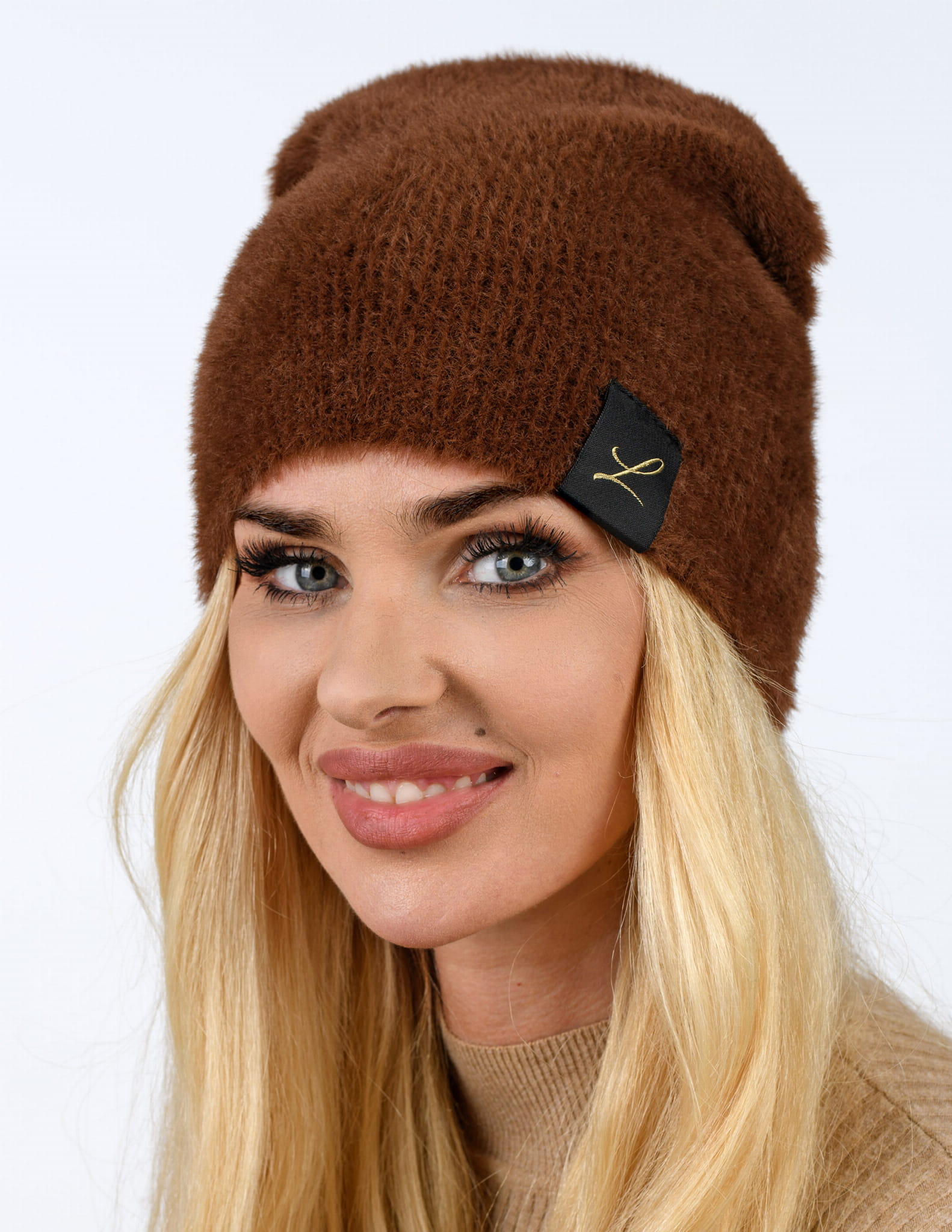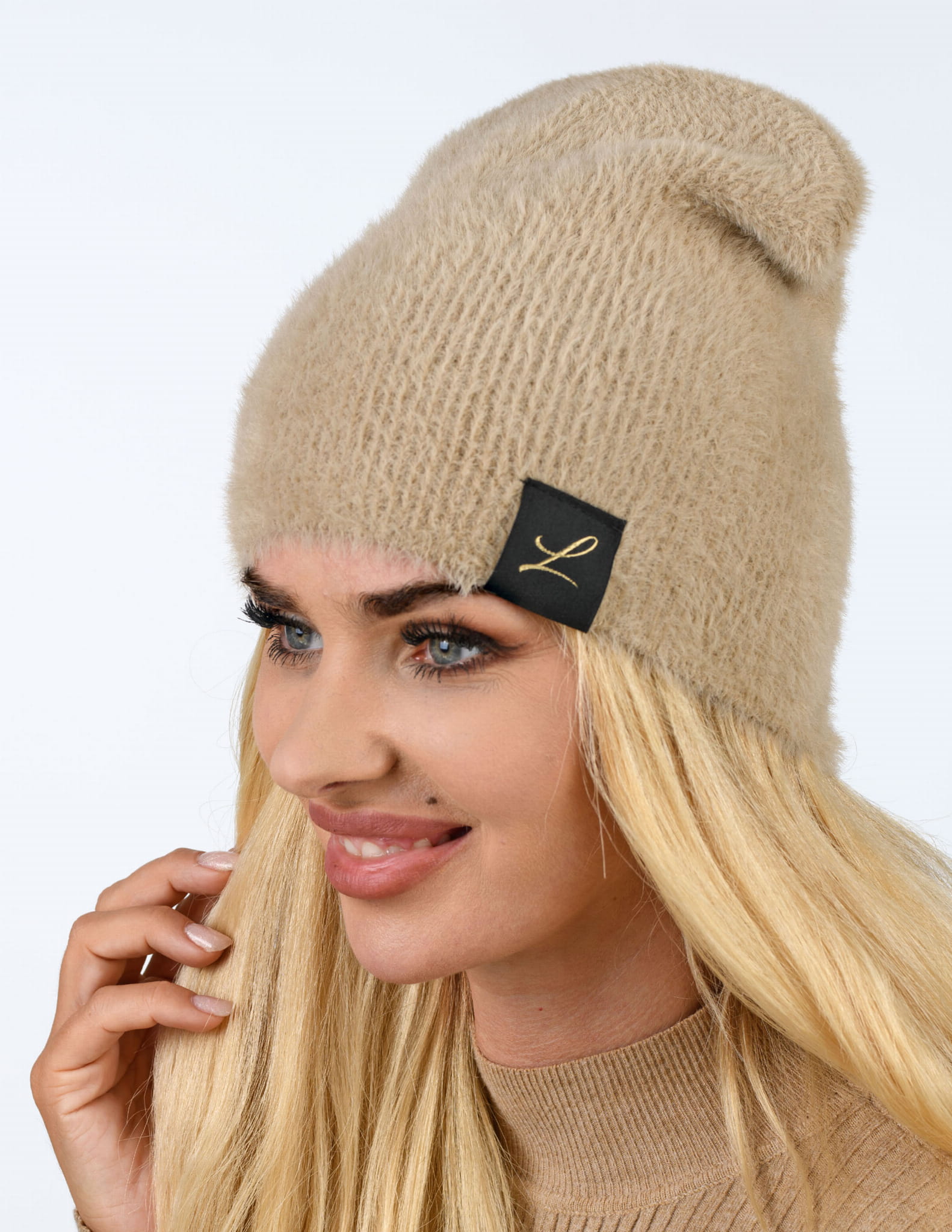 Modna moherowa czapka damska LEMA Sheila - puszysta czapka zimowa bez pompona